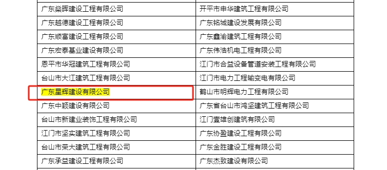 | 评价依据: | 企业自报,并在江门市建筑业企业信用管理信息系统公布名单 |