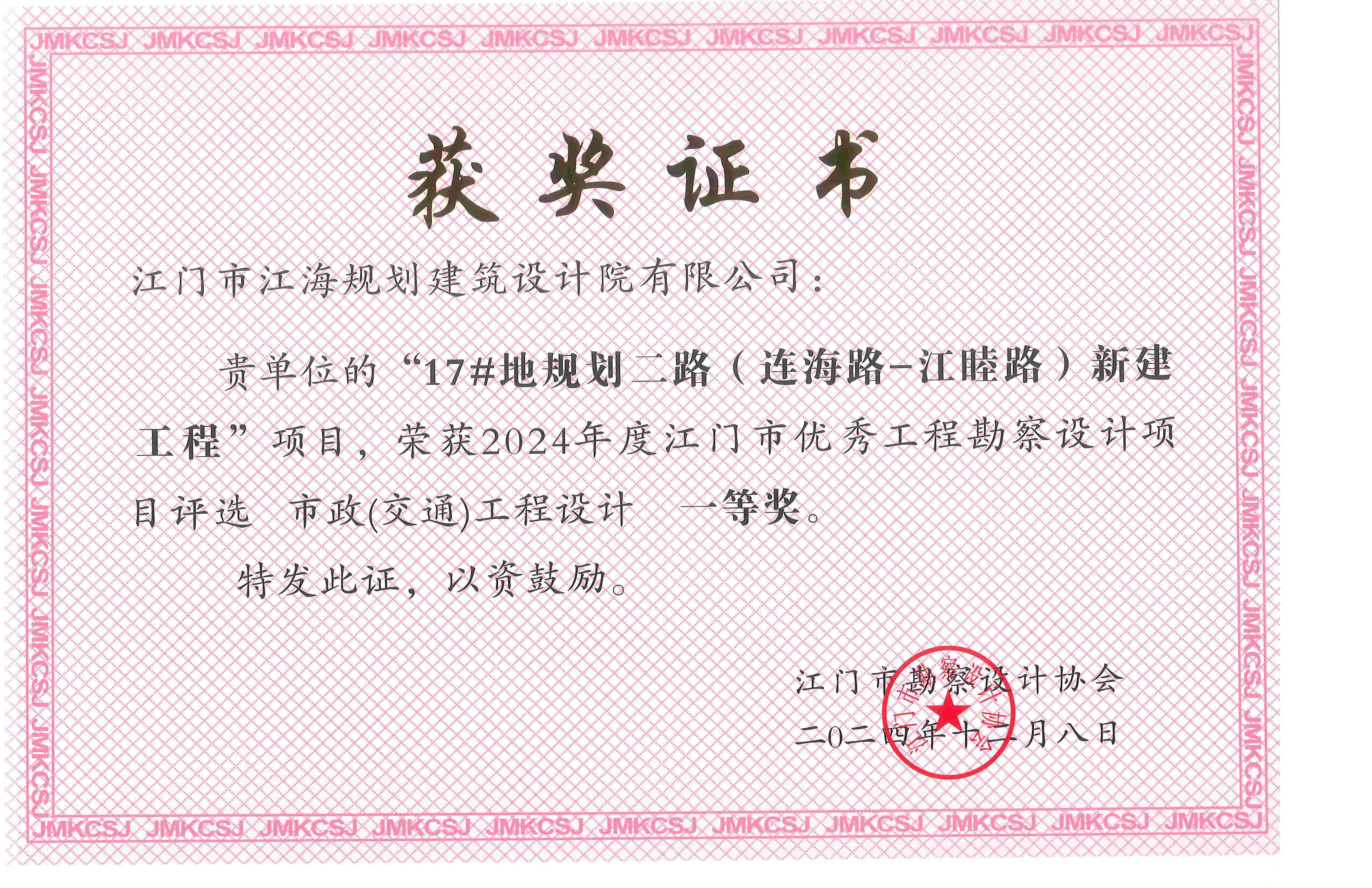 | 类别名称: | 江门市优秀勘察设计奖 |