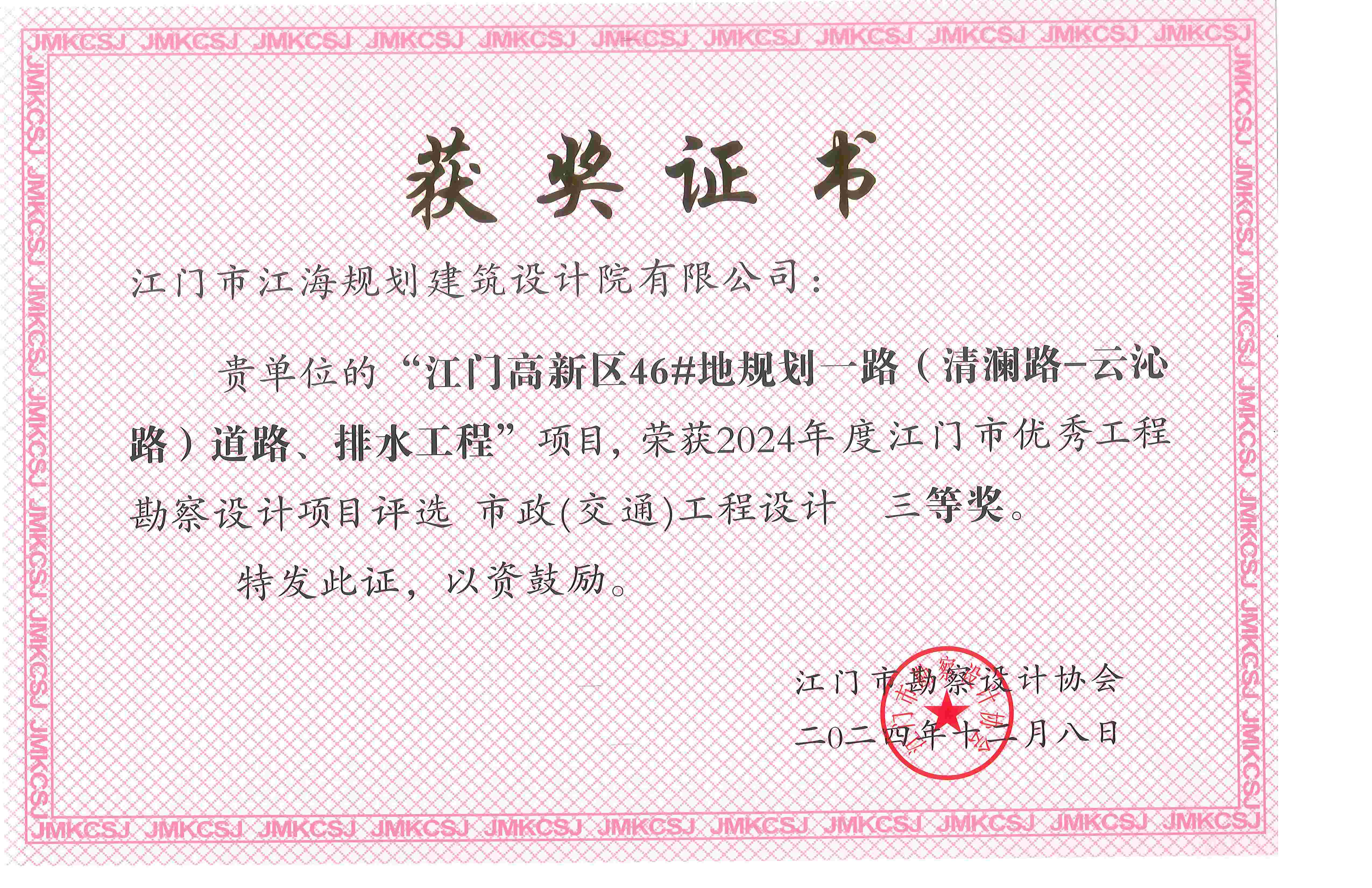 | 类别名称: | 江门市优秀勘察设计奖 |