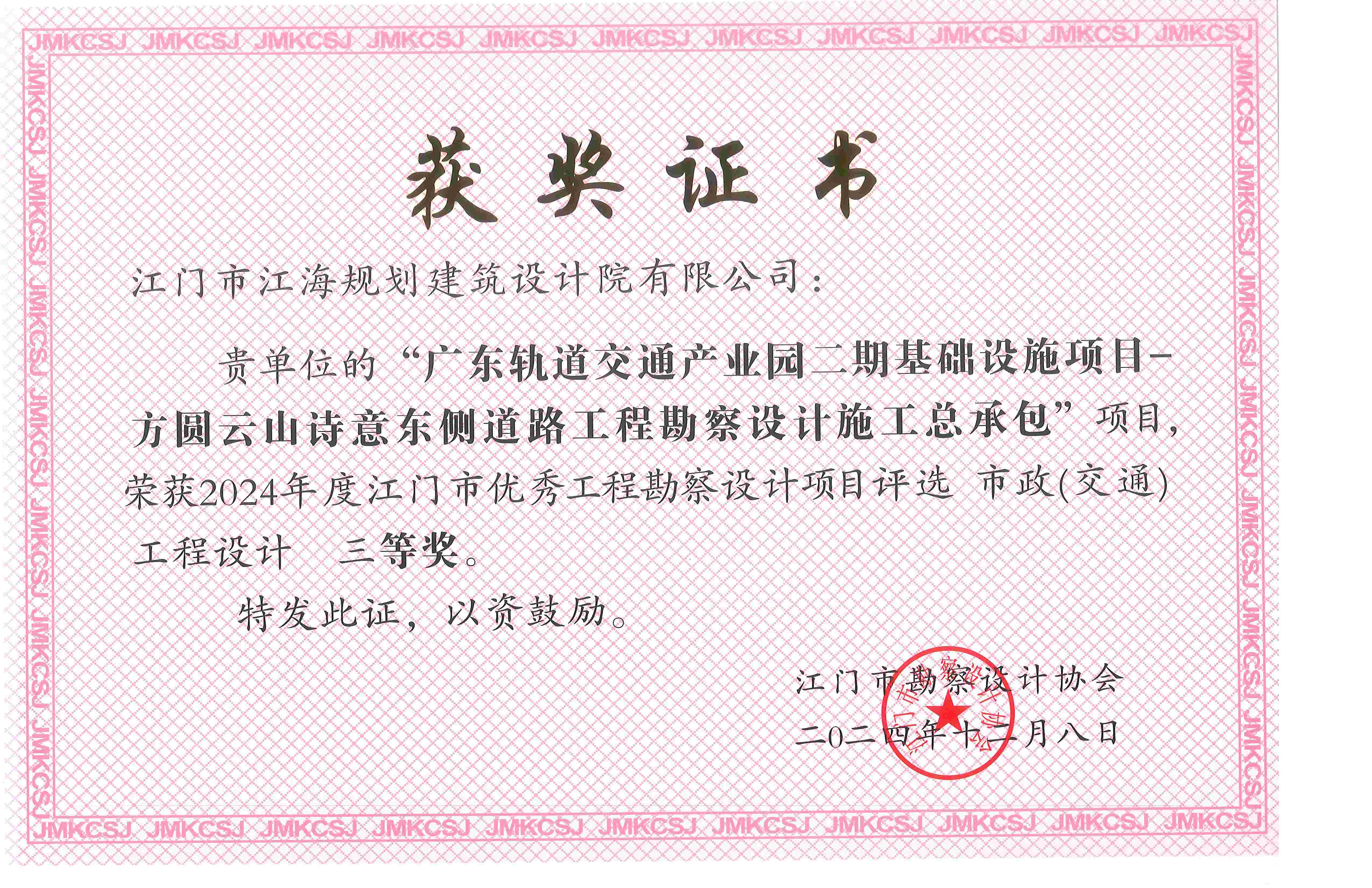 类别名称: 江门市优秀勘察设计奖