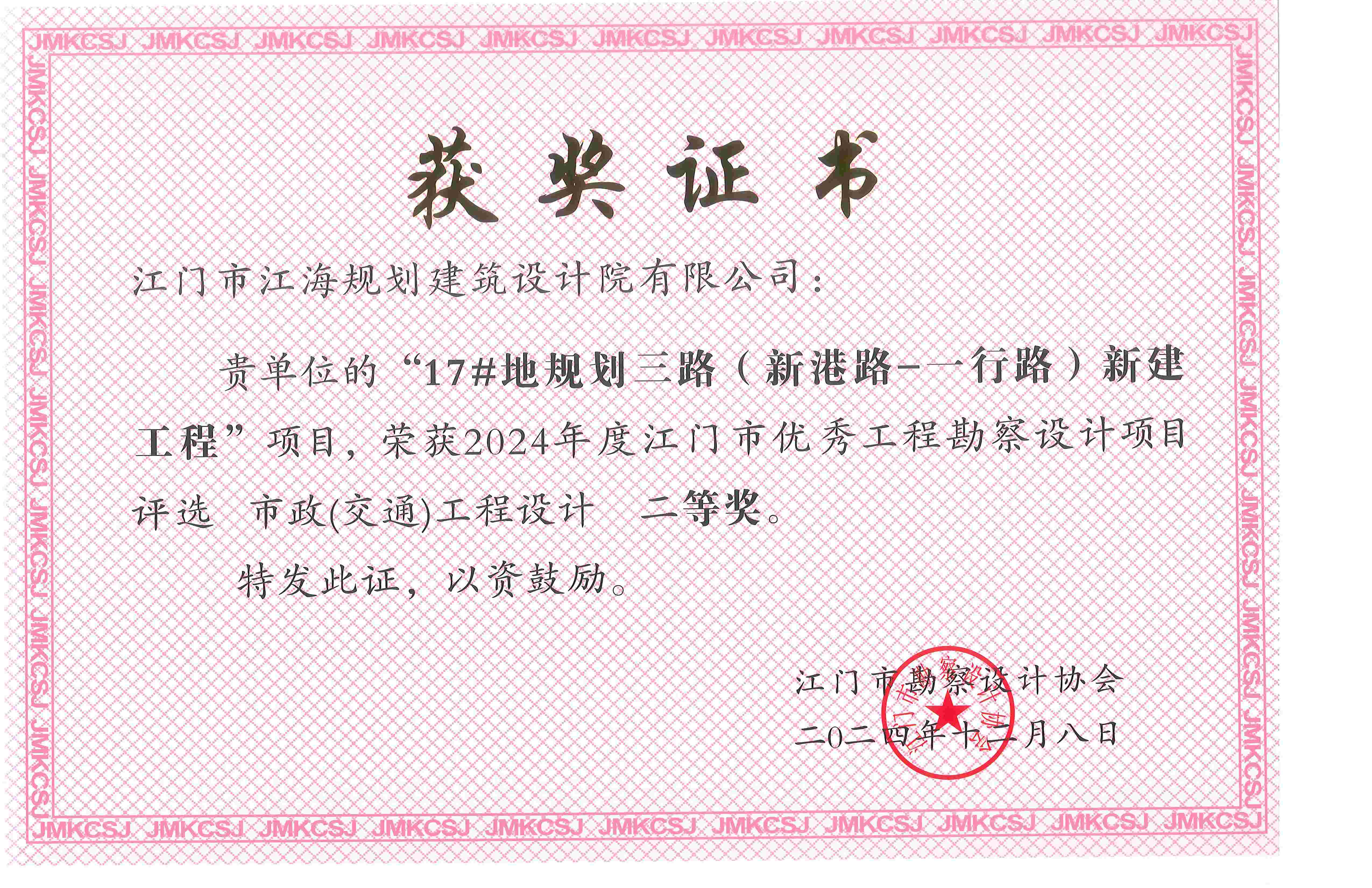 | 类别名称: | 江门市优秀勘察设计奖 |