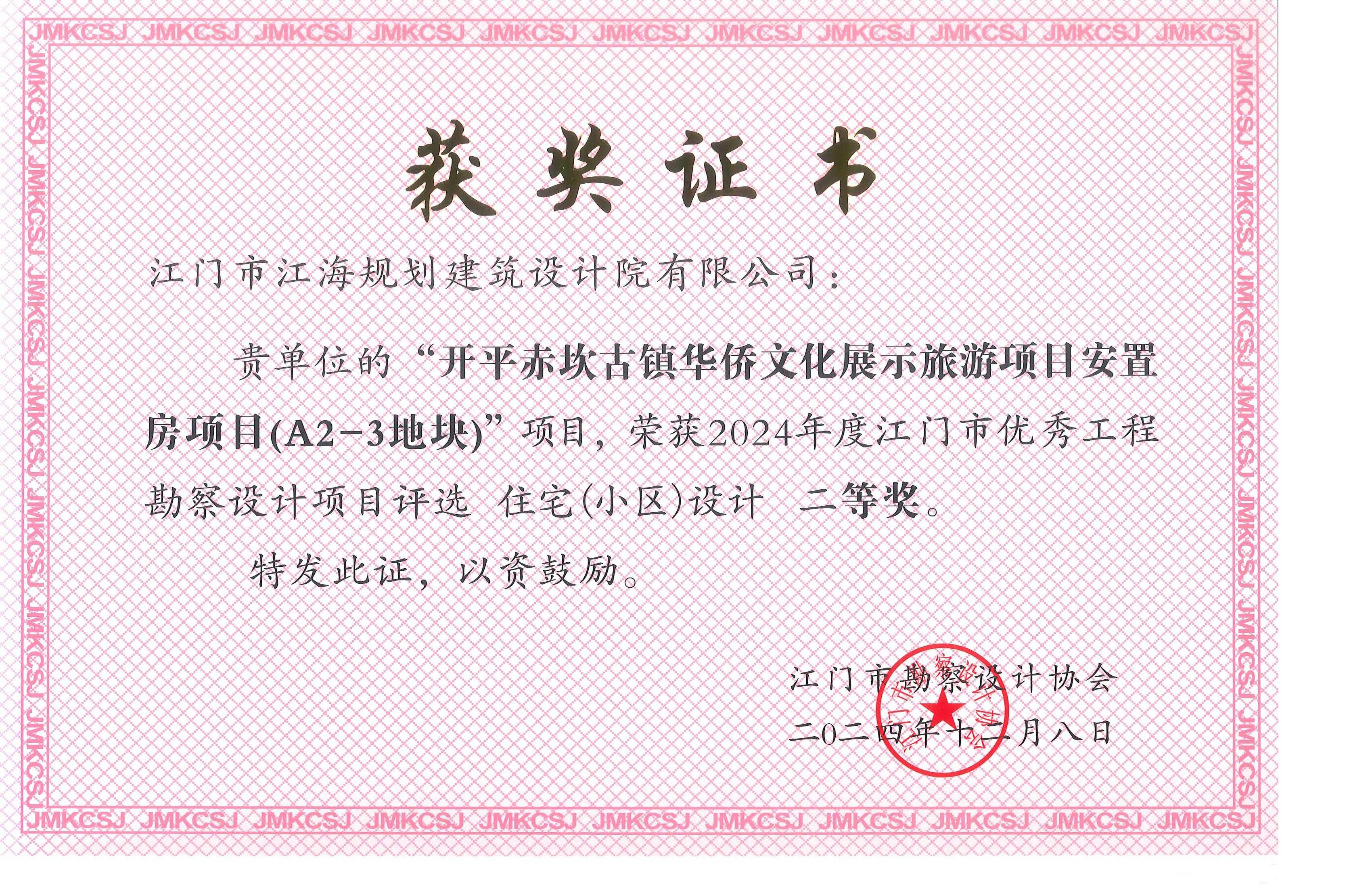 类别名称: 江门市优秀勘察设计奖