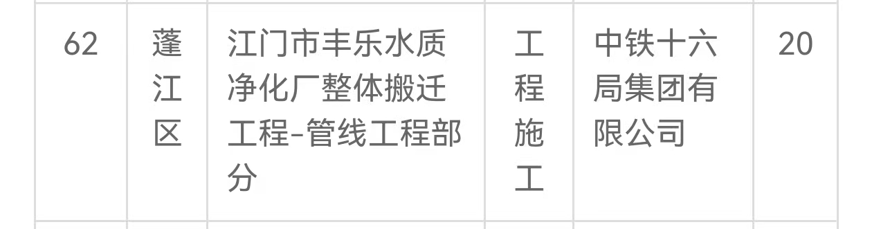 | 工程项目名称: | 江门市丰乐水质净化厂整体搬迁工程-管线工程部分 |