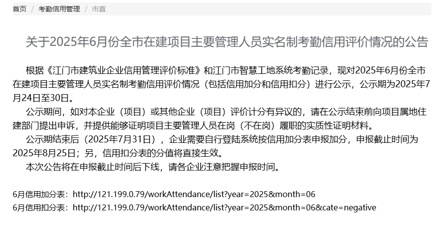 | 类别名称: | 对纳入实名制管理的房屋市政项目,总监理工程师和专业监理工程师在一个月内均达到以下在岗率,企业可申请加分(人员在岗率计算:在岗天数/当月天数)80%≤人员在岗率 |