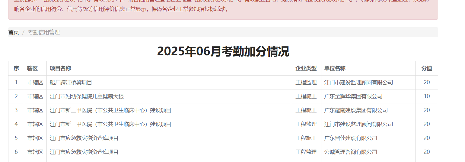 | 类别名称: | 对纳入实名制管理的房屋市政项目,总监理工程师和专业监理工程师在一个月内均达到以下在岗率,企业可申请加分(人员在岗率计算:在岗天数/当月天数)80%≤人员在岗率 |
