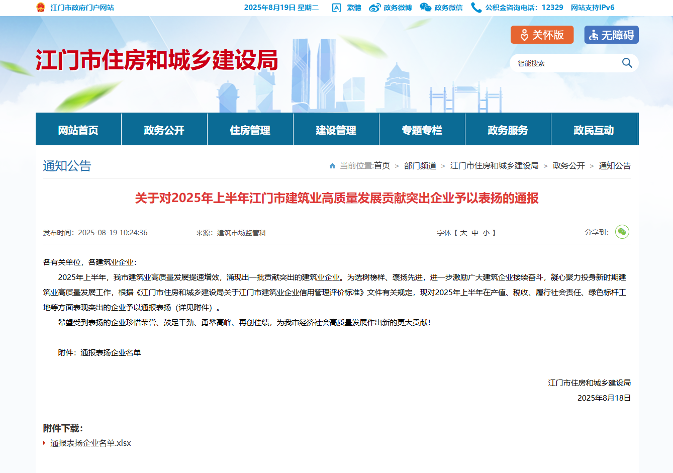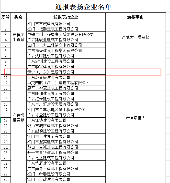 | 类别名称: | 江门市住房和城乡建设局:与江门市房屋市政建设有关市场行为、质量安全以及与市建筑业高质量发展相关方面的通报表扬 |