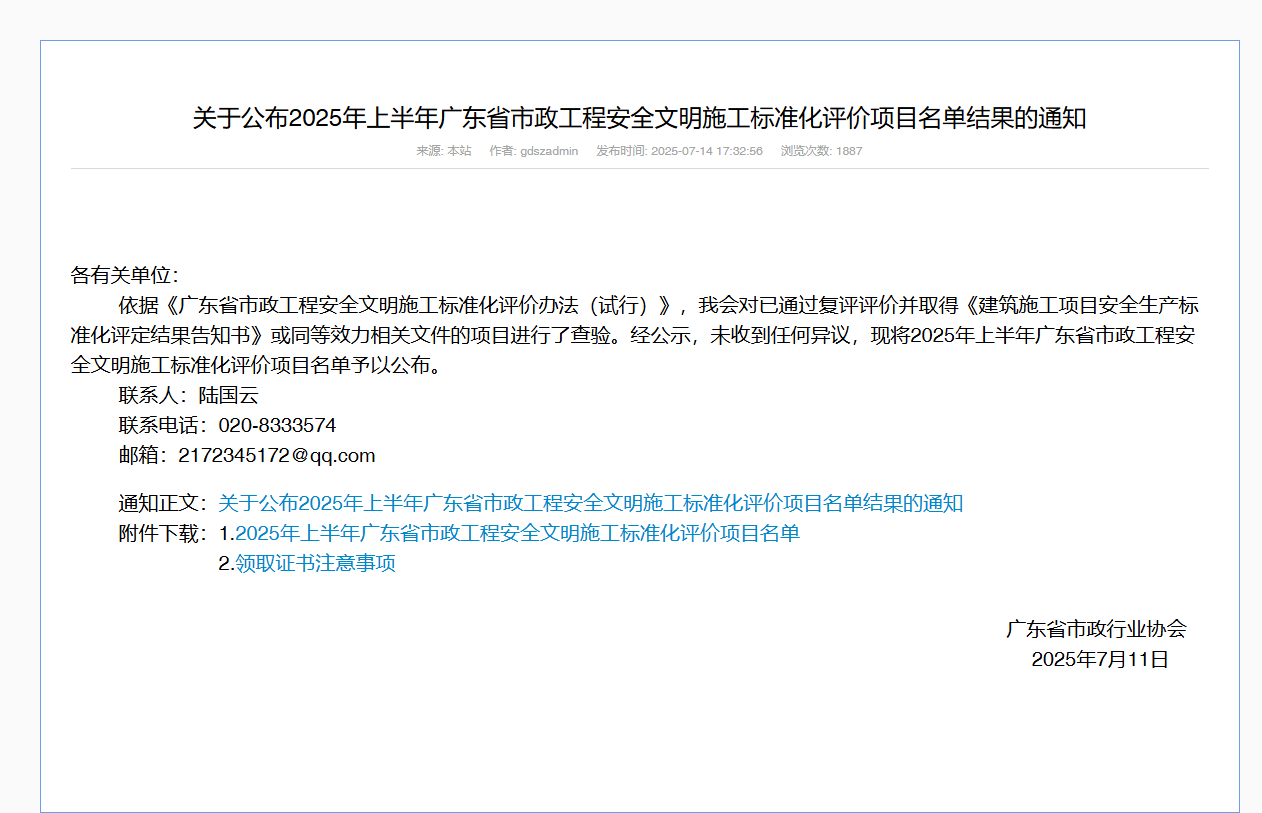 | 类别名称: | 广东省市政行业协会:广东省市政工程安全文明施工示范工地 |