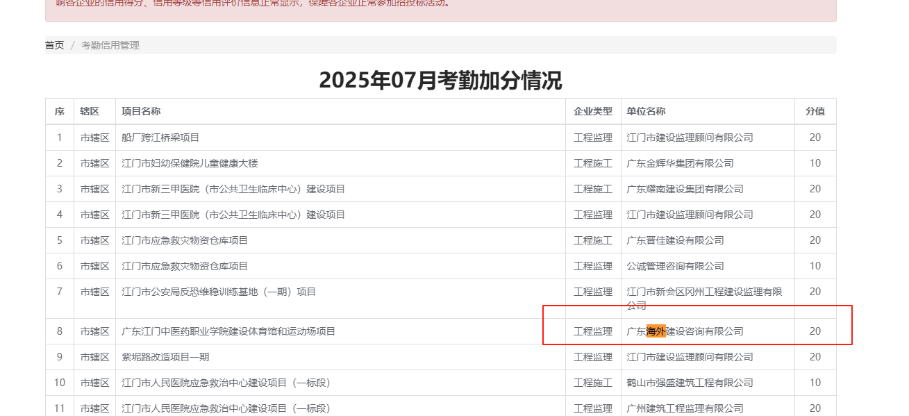 | 类别名称: | 对纳入实名制管理的房屋市政项目,总监理工程师和专业监理工程师在一个月内均达到以下在岗率,企业可申请加分(人员在岗率计算:在岗天数/当月天数)80%≤人员在岗率 |