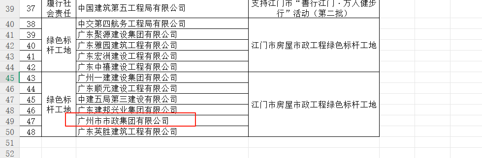 | 类别名称: | 江门市住房和城乡建设局:与江门市房屋市政建设有关市场行为、质量安全以及与市建筑业高质量发展相关方面的通报表扬 |