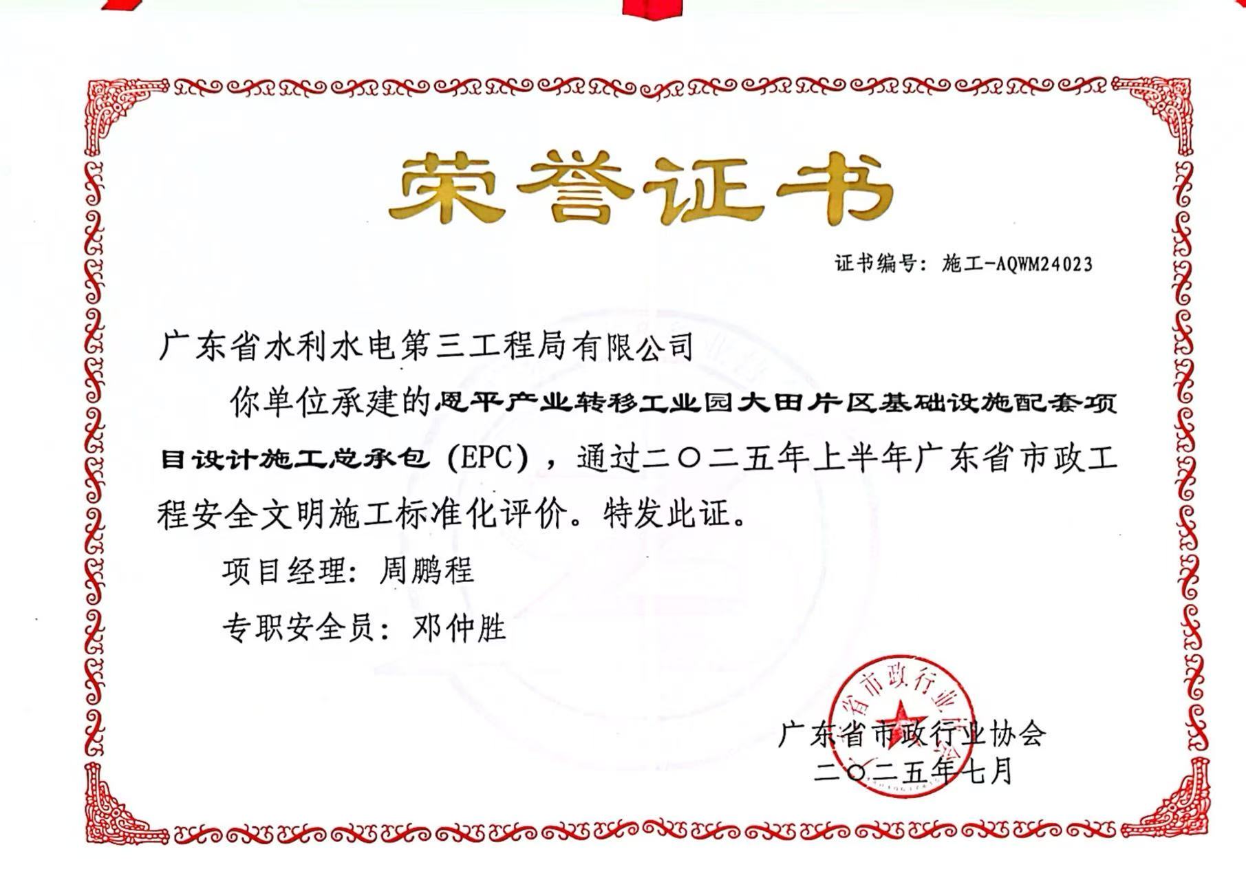 | 类别名称: | 广东省市政行业协会:广东省市政工程安全文明施工示范工地 |