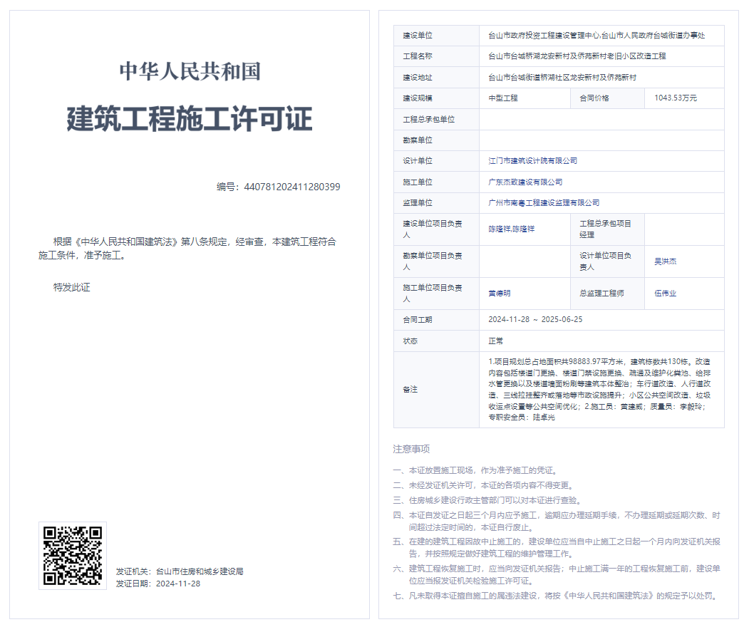| 工程项目名称: | 台山市台城桥湖龙安新村及侨苑新村老旧小区改造工程 |