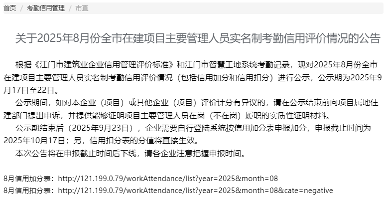 | 类别名称: | 对纳入实名制管理的房屋市政项目,项目负责人和专职安全员在一个月内均达到以下在岗率,企业可申请加分(人员在岗率计算:在岗天数/当月天数)90%≤人员在岗率<100% |