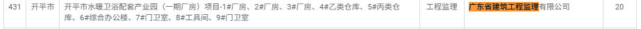 | 工程项目名称: | 开平市水暖卫浴配套产业园 (一期厂房) 项目-1#厂房、2#厂房、3#厂房、4#乙 类仓库、5#丙类仓库、 6#综合办公楼、7#门卫室、8#工具间、 9#门卫室 |