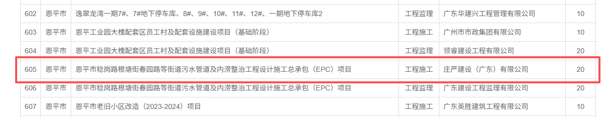 | 工程项目名称: | 恩平市稔岗路根塘街春园路等街道污水管道及内涝整治工程设计施工总承包(EPC)项目 |