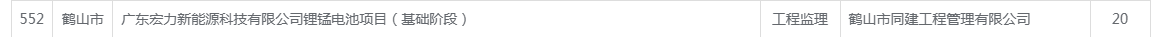 | 工程项目名称: | 广东宏力新能源科技有限公司锂锰电池项目(基础阶段) |