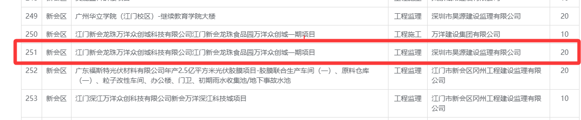 | 工程项目名称: | 江门新会龙珠万洋众创城科技有限公司江门新会龙珠食品园万洋众创城一期项目 |
