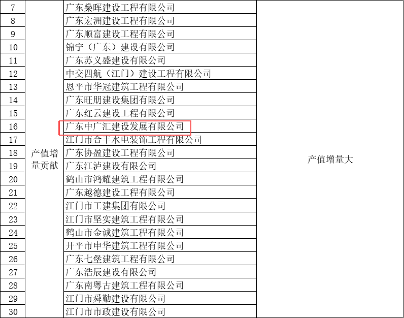 | 发文编号: | 关于对2025年上半年江门市建筑业高质量发展贡献突出企业予以表扬的通报 |