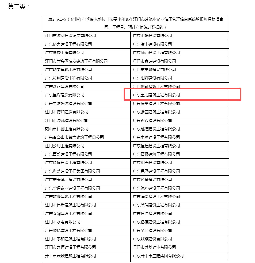 | 评价依据: | 根据填报情况在江门市建筑业企业信用管理信息系统公布名单 |