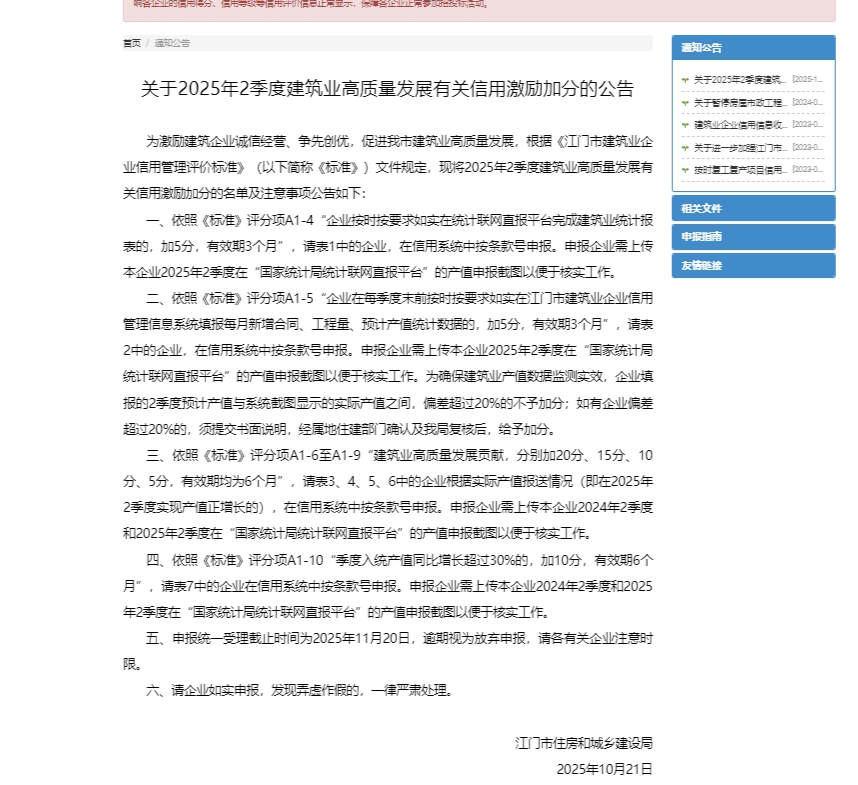 | 发文单位: | 江门市建筑业协会 |