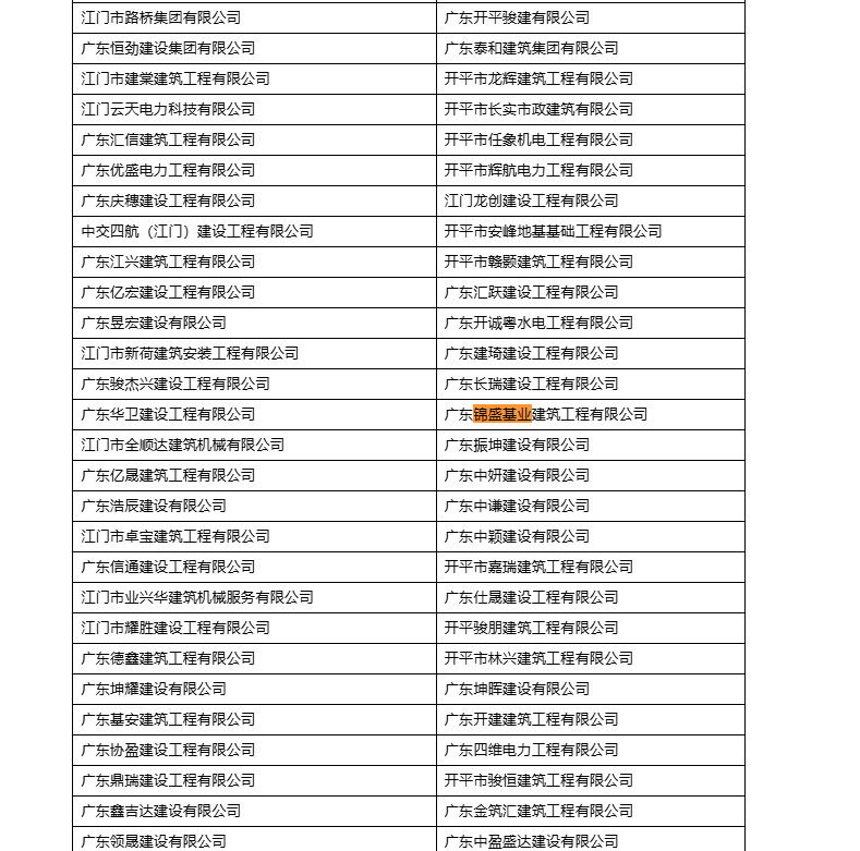 | 评价依据: | 在江门市建筑业企业信用管理 信息系统公布名单 |