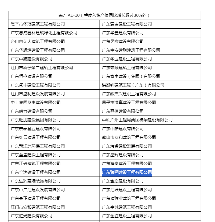 | 类别名称: | 建筑业高质量发展贡献,季度入统产值同比增长超过30%的 |