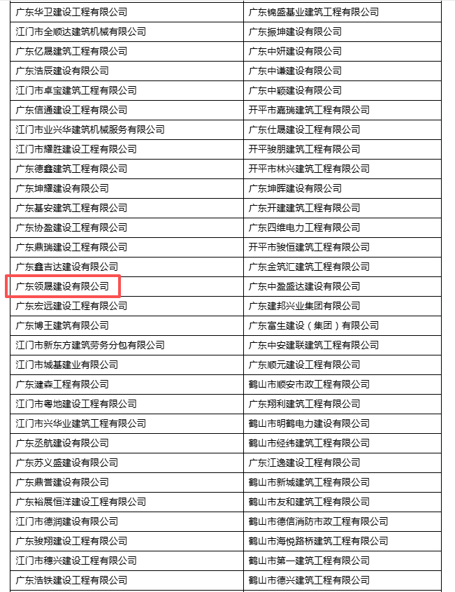 评价依据: 在江门市建筑业企业信用管理 信息系统公布名单