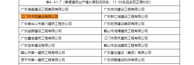 | 评价依据: | 企业自报,并在江门市建筑业企业信用管理信息系统公布名单 |