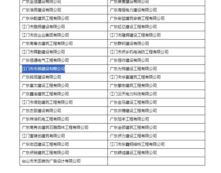 | 评价依据: | 企业自报,并在江门市建筑业企业信用管理信息系统公布名单 |