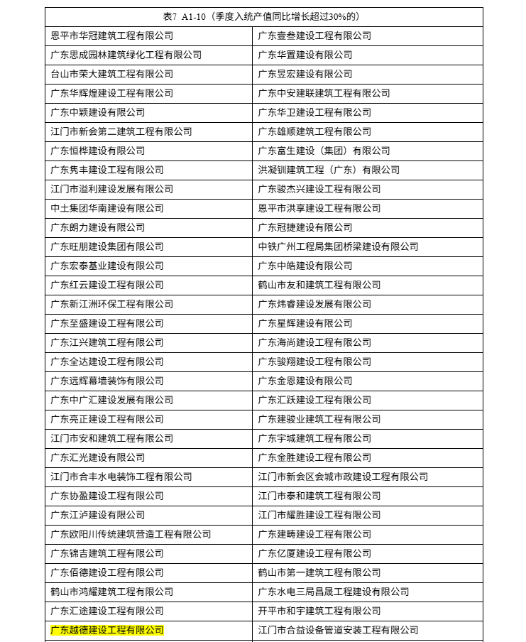 | 类别名称: | 建筑业高质量发展贡献,季度入统产值同比增长超过30%的 |