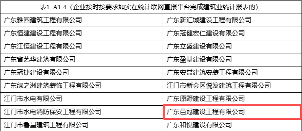 | 类别名称: | 企业按时按要求如实在统计联网直报平台完成建筑业统计报表的 |