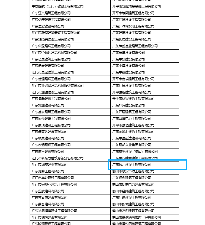 | 评价依据: | 在江门市建筑业企业信用管理 信息系统公布名单 |
