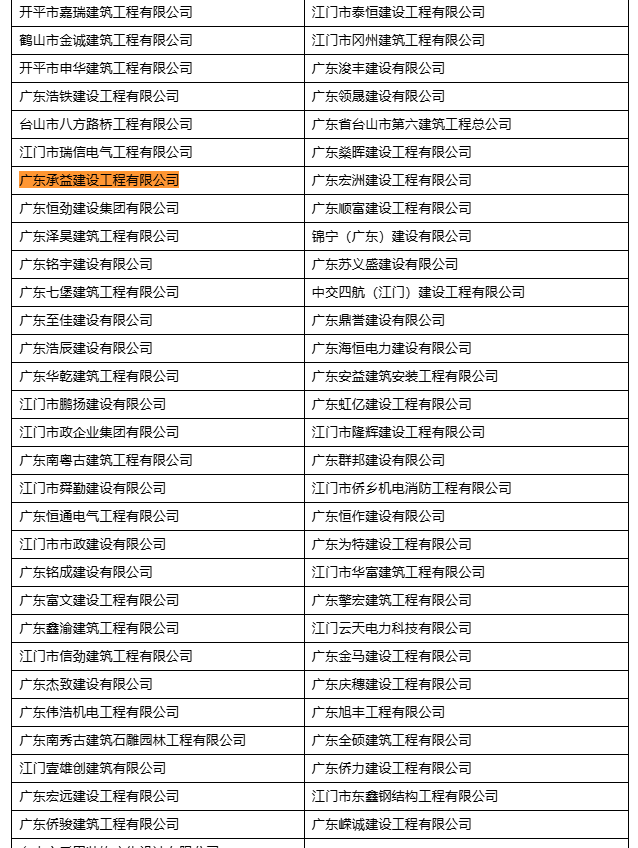 | 评价依据: | 企业自报,并在江门市建筑业企业信用管理信息系统公布名单 |