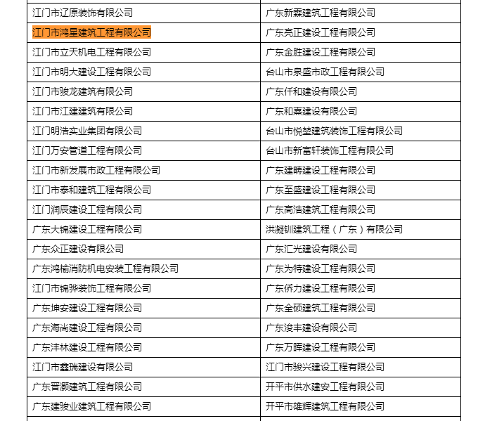 评价依据: 在江门市建筑业企业信用管理 信息系统公布名单