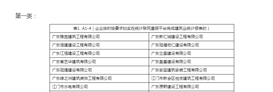 | 类别名称: | 企业按时按要求如实在统计联网直报平台完成建筑业统计报表的 |