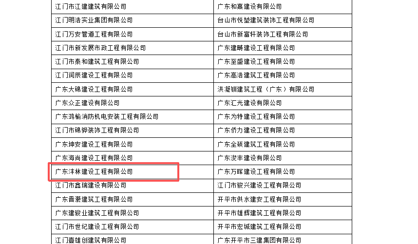 | 评价依据: | 在江门市建筑业企业信用管理 信息系统公布名单 |