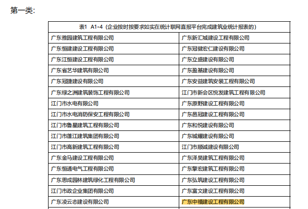 | 类别名称: | 企业按时按要求如实在统计联网直报平台完成建筑业统计报表的 |