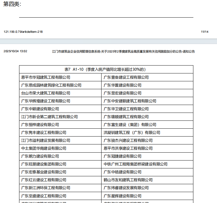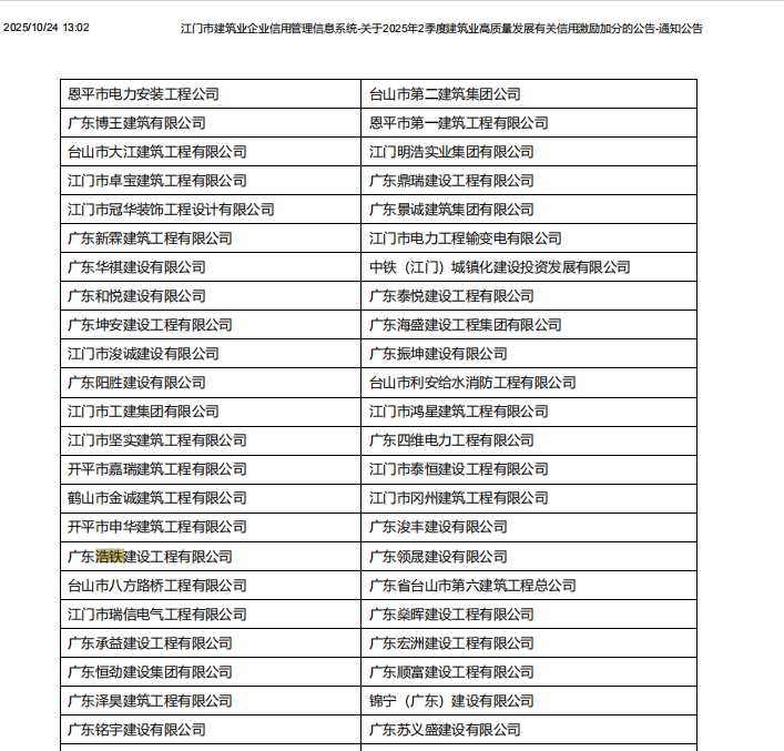 发文编号: 关于2025年2季度建筑业高质量发展有关信用激励加分的公告