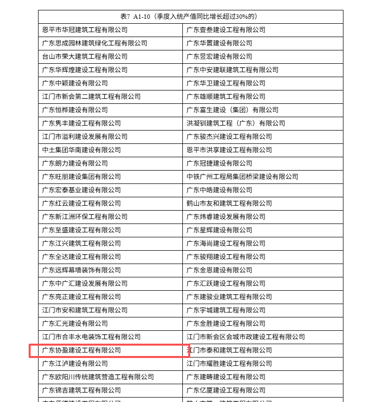 | 类别名称: | 建筑业高质量发展贡献,季度入统产值同比增长超过30%的 |