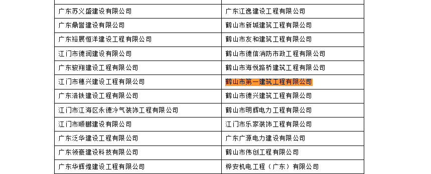 | 企业名称: | 鹤山市第一建筑工程有限公司 |