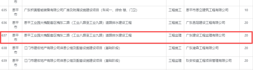 | 工程项目名称: | 恩平工业园大槐配套区槐东二路(工业八路至工业九路)道路排水建设工程 |