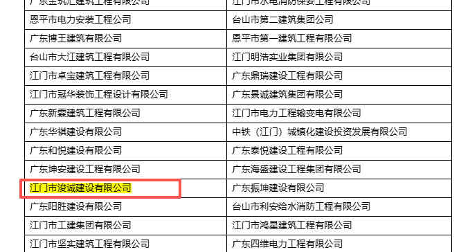 | 评价依据: | 企业自报,并在江门市建筑业企业信用管理信息系统公布名单 |