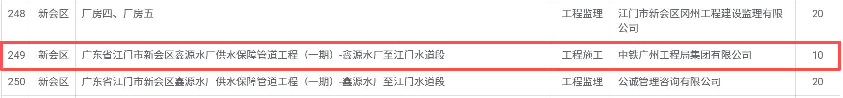 | 工程项目名称: | 广东省江门市新会区鑫源水厂供水保障管道工程(一期)-鑫源水厂至江门水道段 |