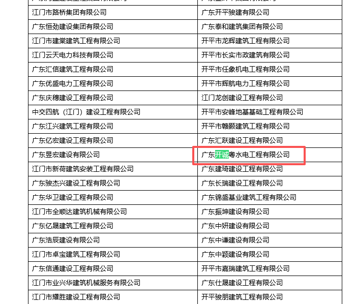 评价依据: 在江门市建筑业企业信用管理 信息系统公布名单