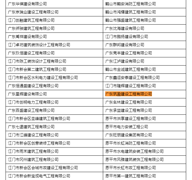 | 评价依据: | 在江门市建筑业企业信用管理 信息系统公布名单 |