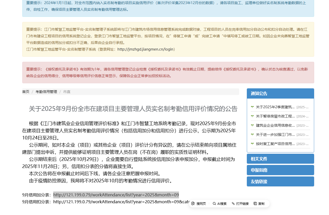 | 类别名称: | 对纳入实名制管理的房屋市政项目,总监理工程师和专业监理工程师在一个月内均达到以下在岗率,企业可申请加分(人员在岗率计算:在岗天数/当月天数)80%≤人员在岗率 |