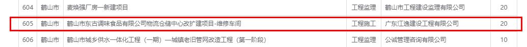 | 工程项目名称: | 鹤山市东古调味食品有限公司物流仓储中心改扩建项目-维修车间 |