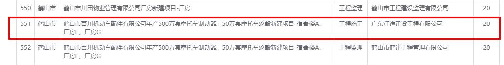 | 工程项目名称: | 鹤山市百川机动车配件有限公司年产500万套摩托车制动器、50万套摩 托车轮毂新建项目-宿舍楼A、厂房E、厂房G |