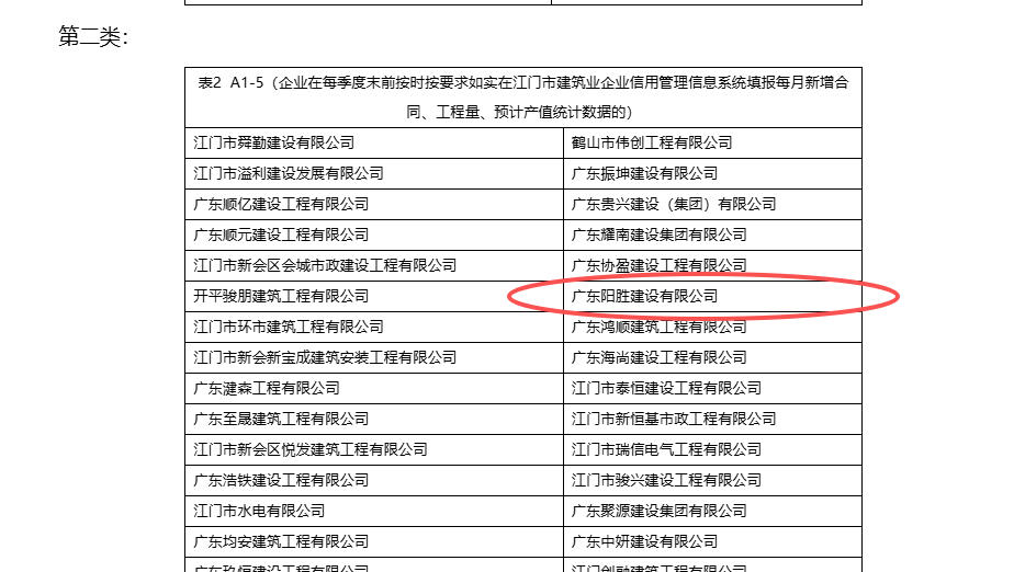 | 类别名称: | 企业在每季度末前按时按要求如实在江门市建筑业企业信用管理信息系统填报每月新增合同、工程量、预计产值统计数据的 |