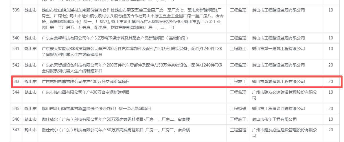 | 工程项目名称: | 广东志格电器有限公司年产400万台空调新建项目 |