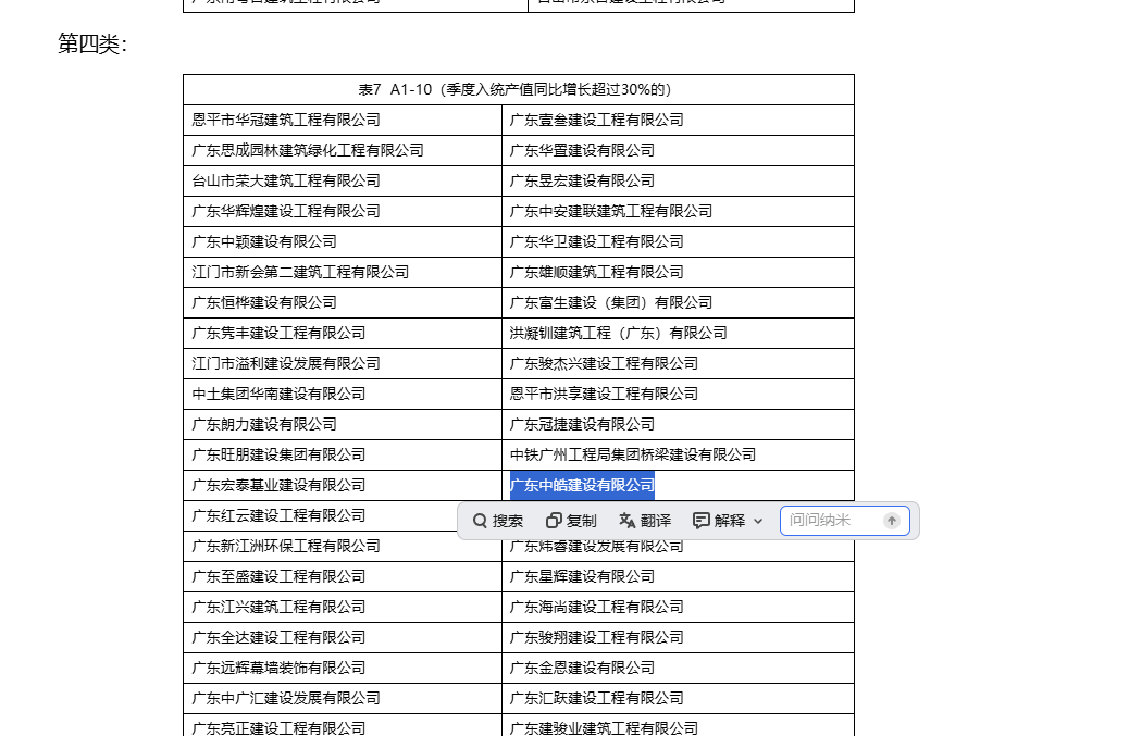 | 类别名称: | 建筑业高质量发展贡献,季度入统产值同比增长超过30%的 |